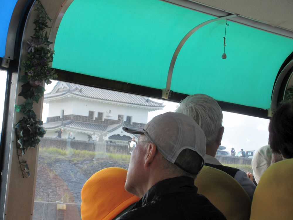 そして左側の窓に外観復元された桑名城の蟠龍櫓が見えてきた。