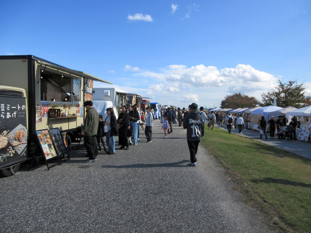 現地で何やらイベントが行われているらしく、揖斐川上流側の土手上にキッチンカーが立ち並んでいる。